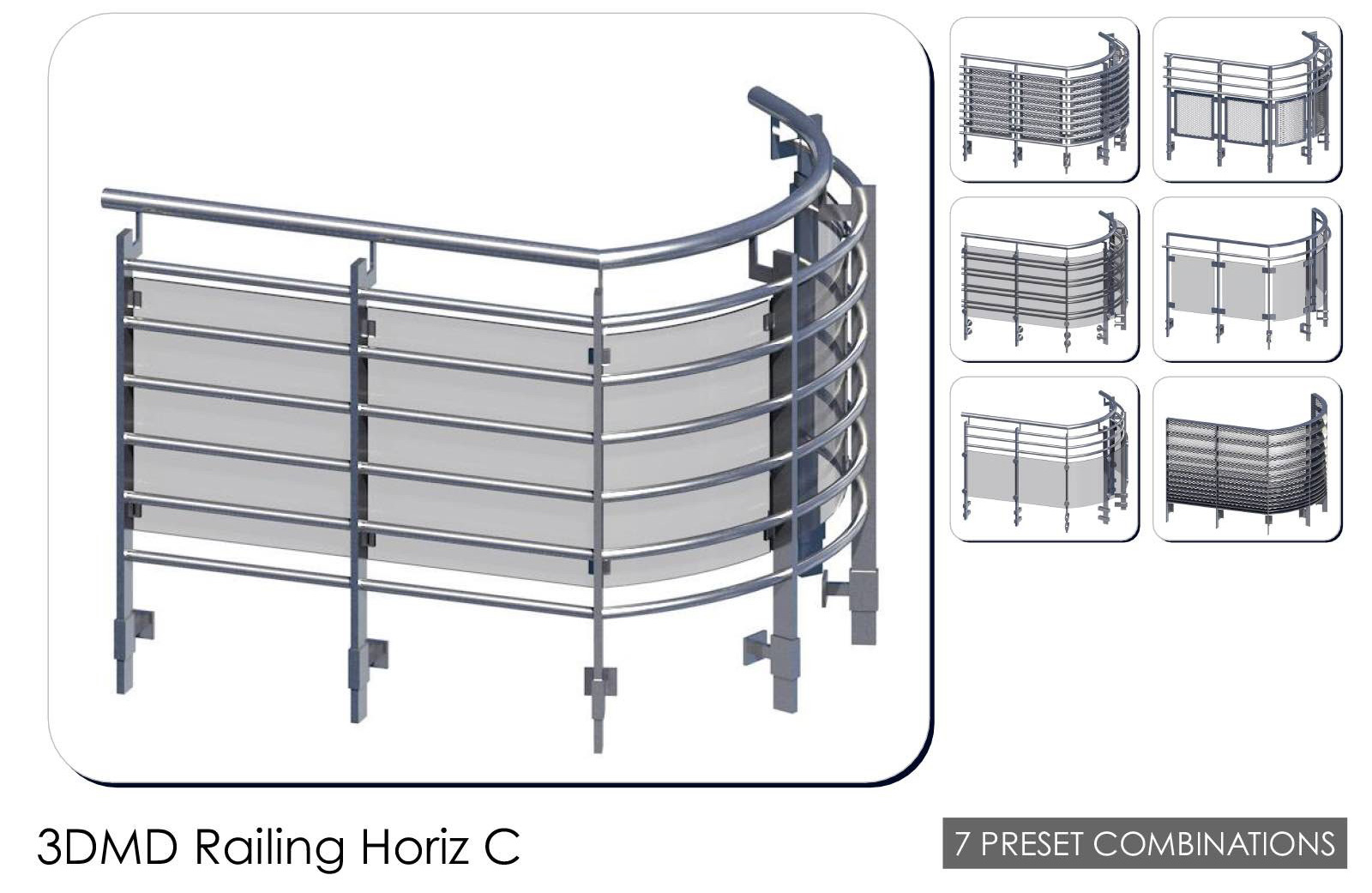 You can simple draw a 3d polyline both 2d and 3d window. You can create curved and sloped path. There are many parameters for post, panel, cable, handrail; you can create you own rail. An option for list allow you to have the railing straightened in the schedule also with quantities for each elements of the railing. You can quickly manage in 2d/3d windows the position and visibility of posts and cables/panels.