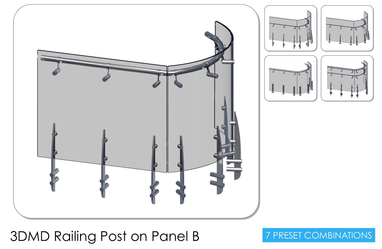 3DMD Railings are archicad object tools. You can simple draw a 3d polyline both 2d and 3d window. You can create curved and sloped path. There are many parameters for post, panel, cable, handrail; you can create you own rail. An option for list allow you to have the railing straightened in the schedule also with quantities for each elements of the railing. You can quickly manage in 2d/3d windows the position and visibility of posts and cables/panels.