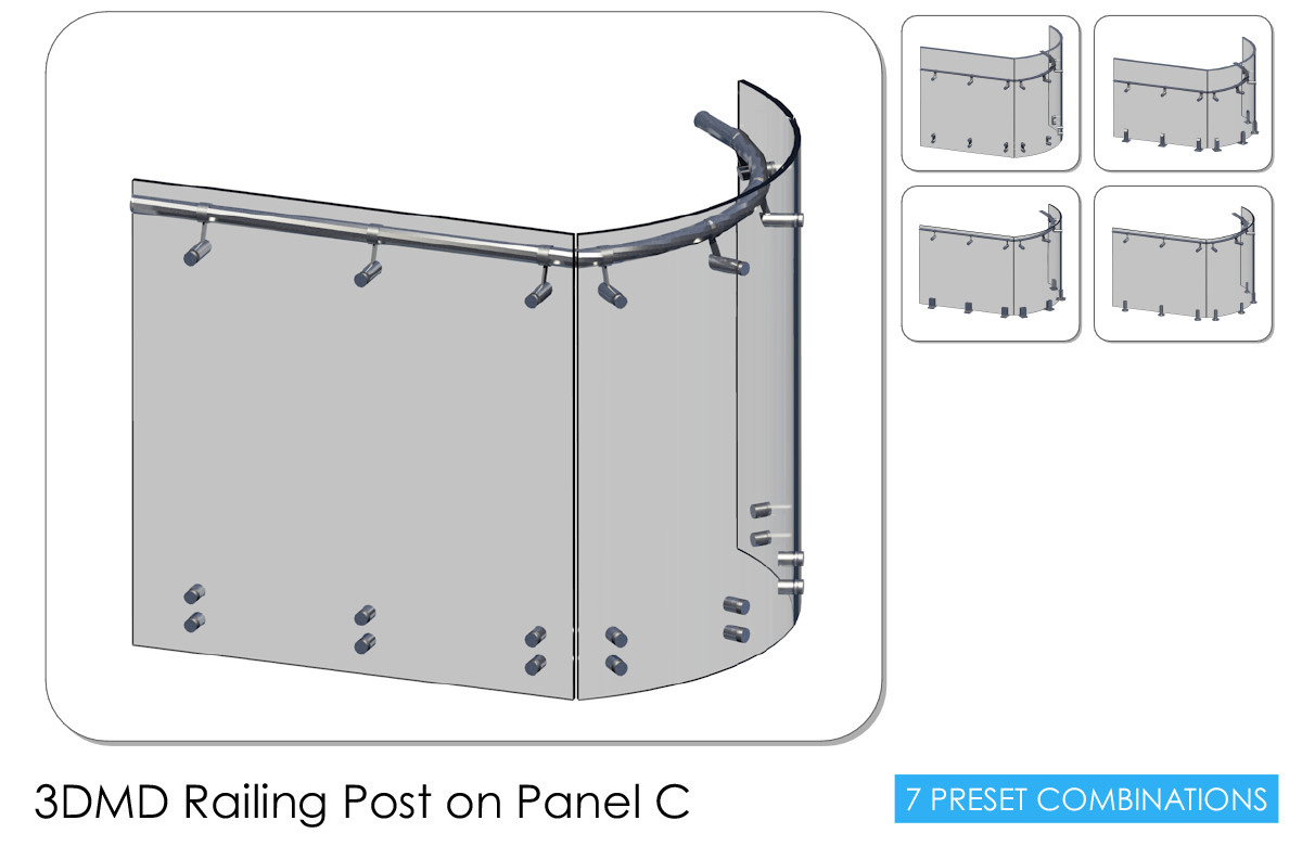 3DMD Railings are archicad object tools. You can simple draw a 3d polyline both 2d and 3d window. You can create curved and sloped path. There are many parameters for post, panel, cable, handrail; you can create you own rail. An option for list allow you to have the railing straightened in the schedule also with quantities for each elements of the railing. You can quickly manage in 2d/3d windows the position and visibility of posts and cables/panels.