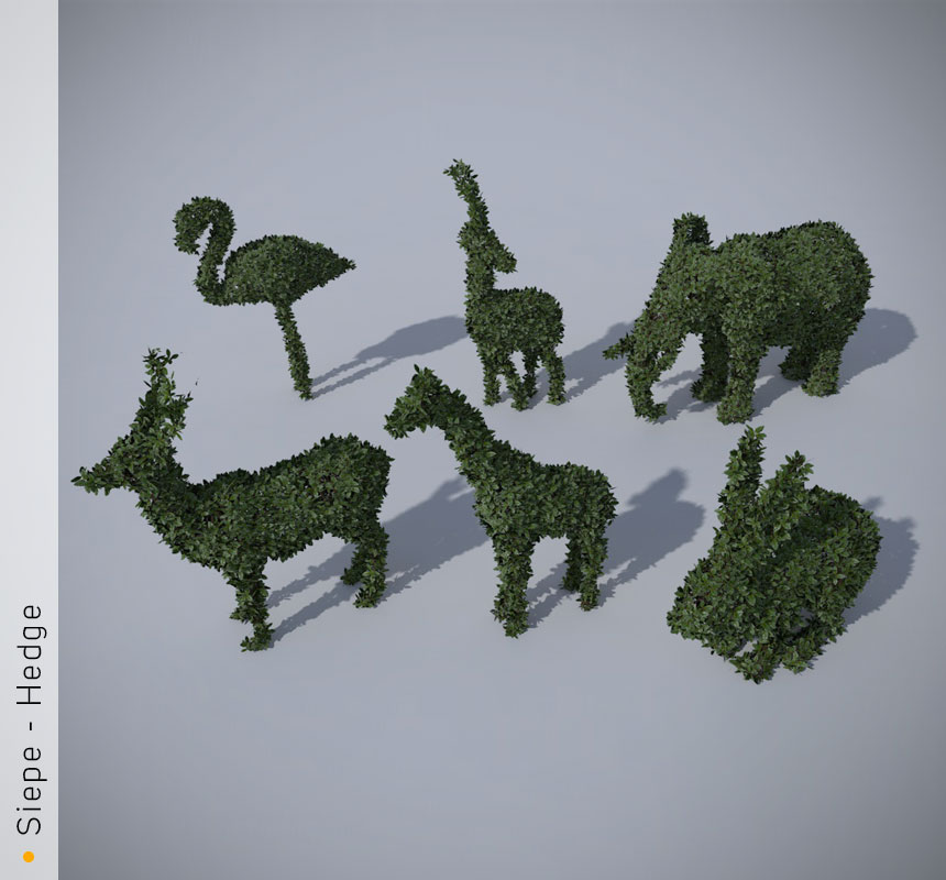 Highly detailed 3d models of hedges with all textures, shaders and materials. They are ready to use, just put they into your scene.