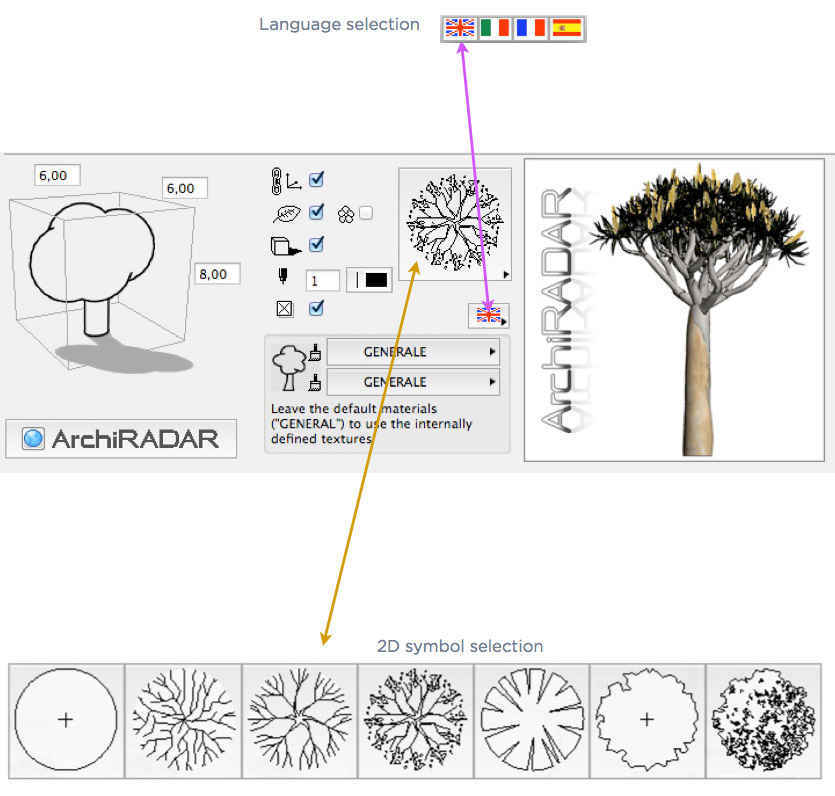 In addiction to that, for each species there is a seventh object called "Random Tree": it's a useful tool that, with a simple click, adds to the scene a random tree in order to avoid repetitions.