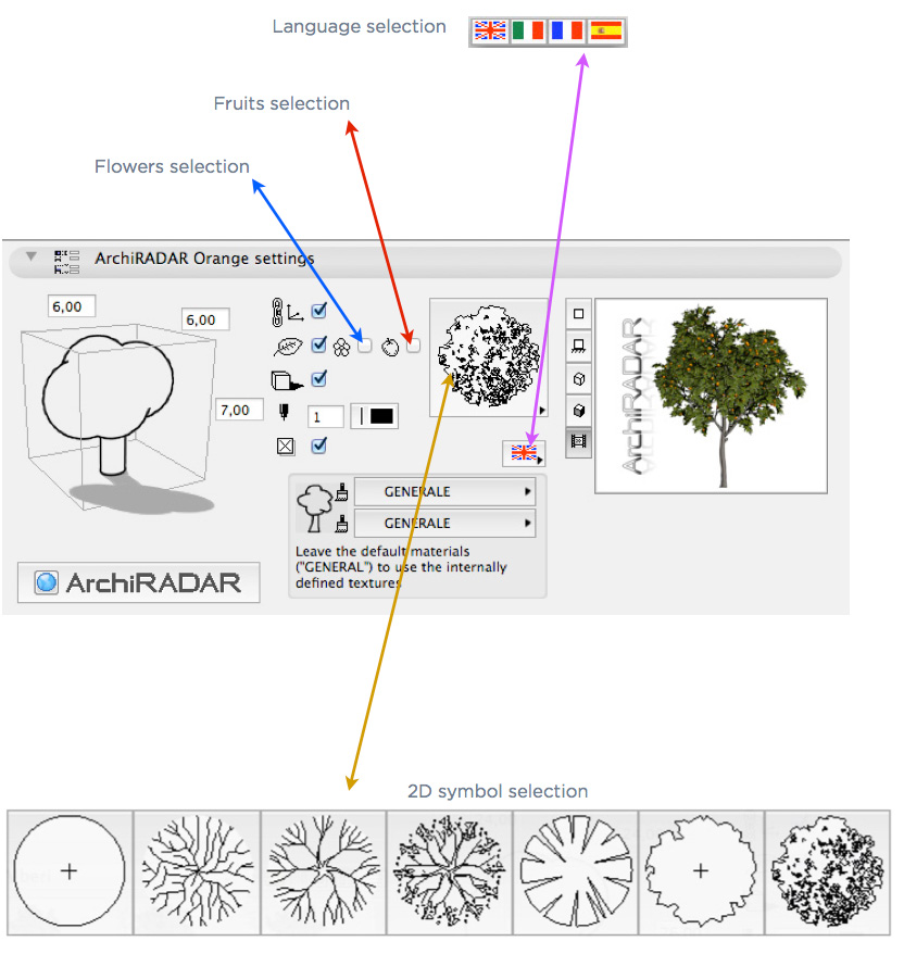 In addiction to that, for each species there is a seventh object called "Random Tree": it's a useful tool that, with a simple click, adds to the scene a random tree in order to avoid repetitions.