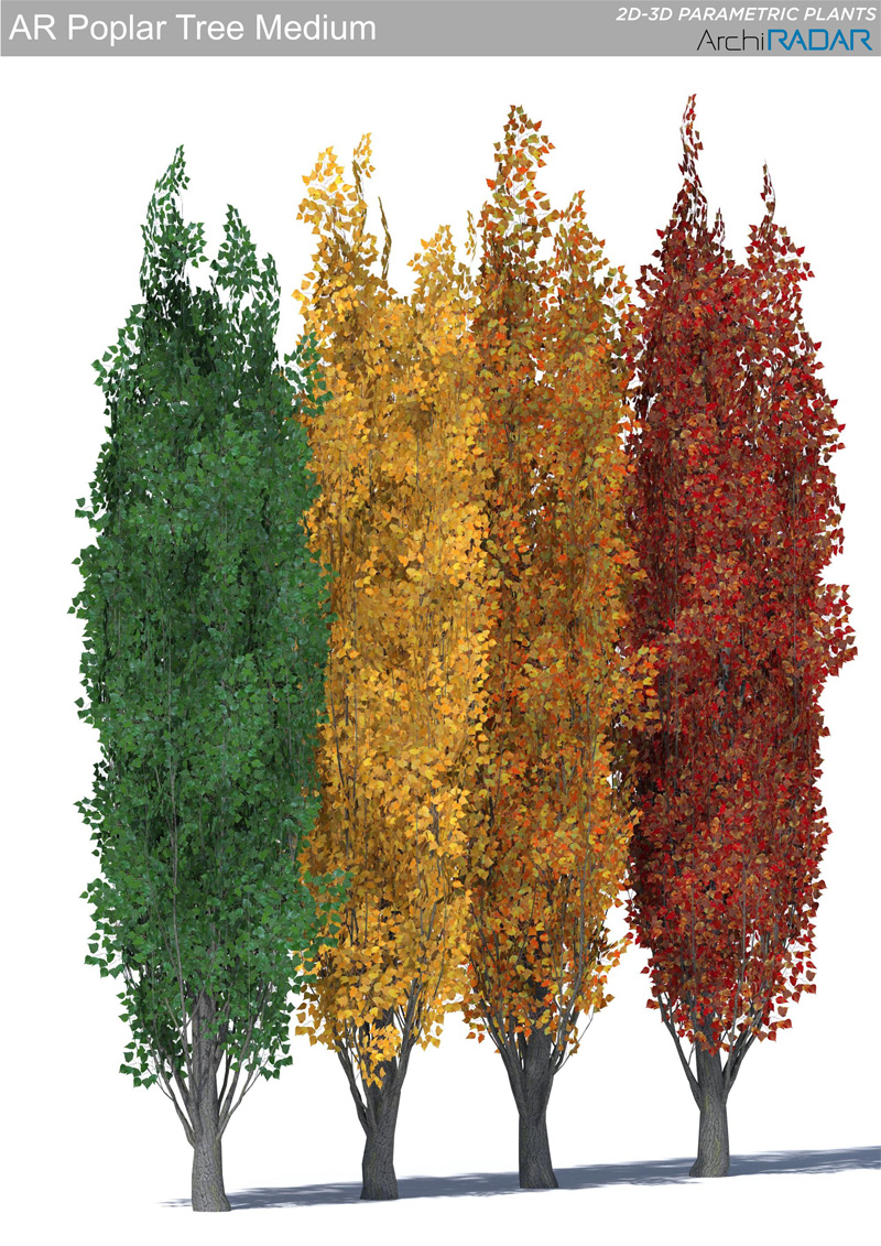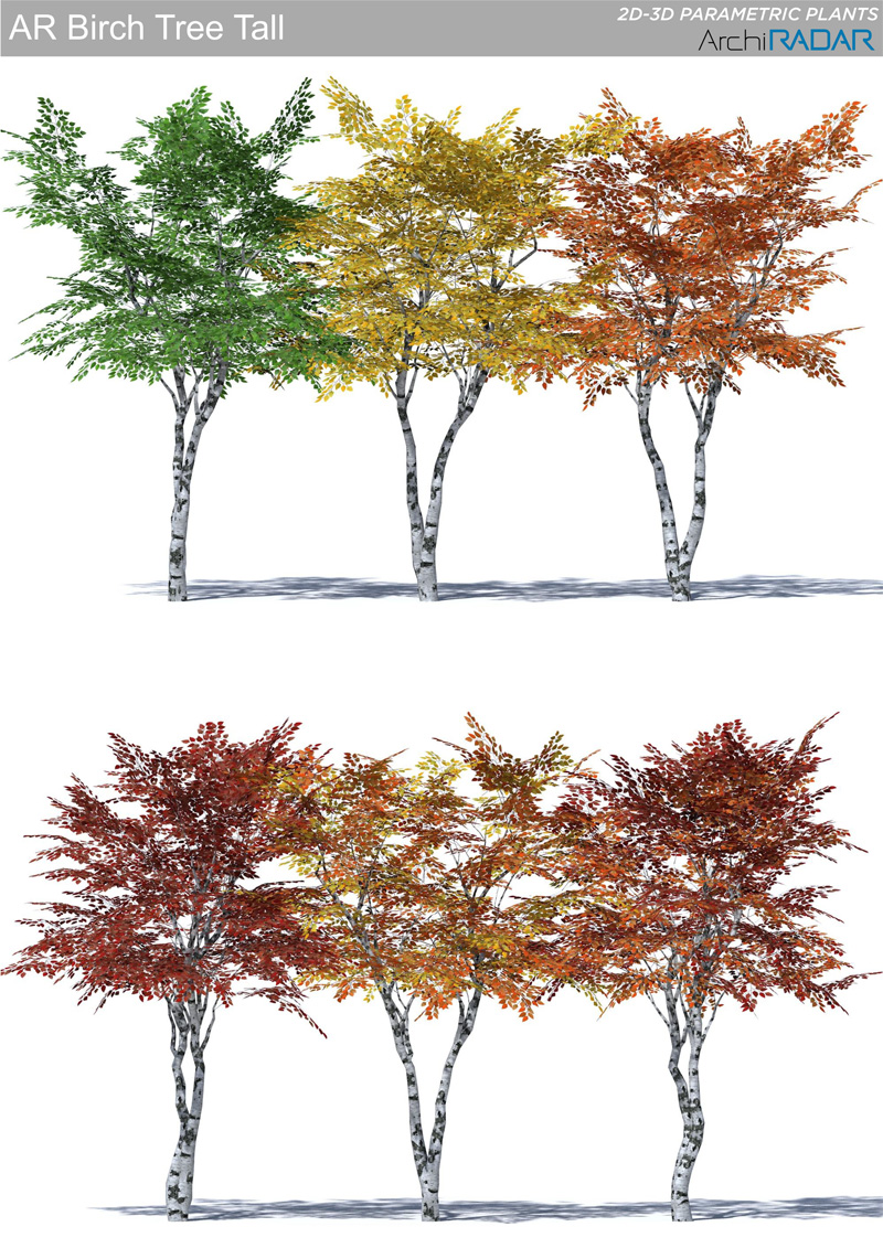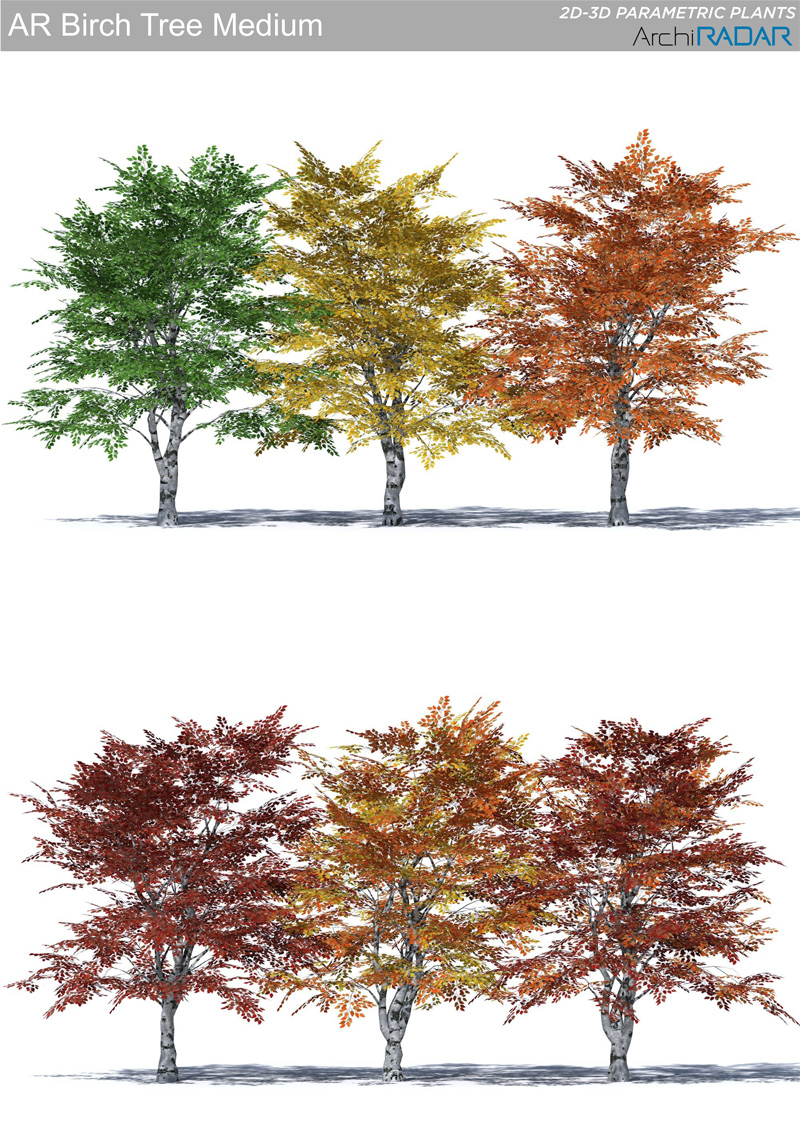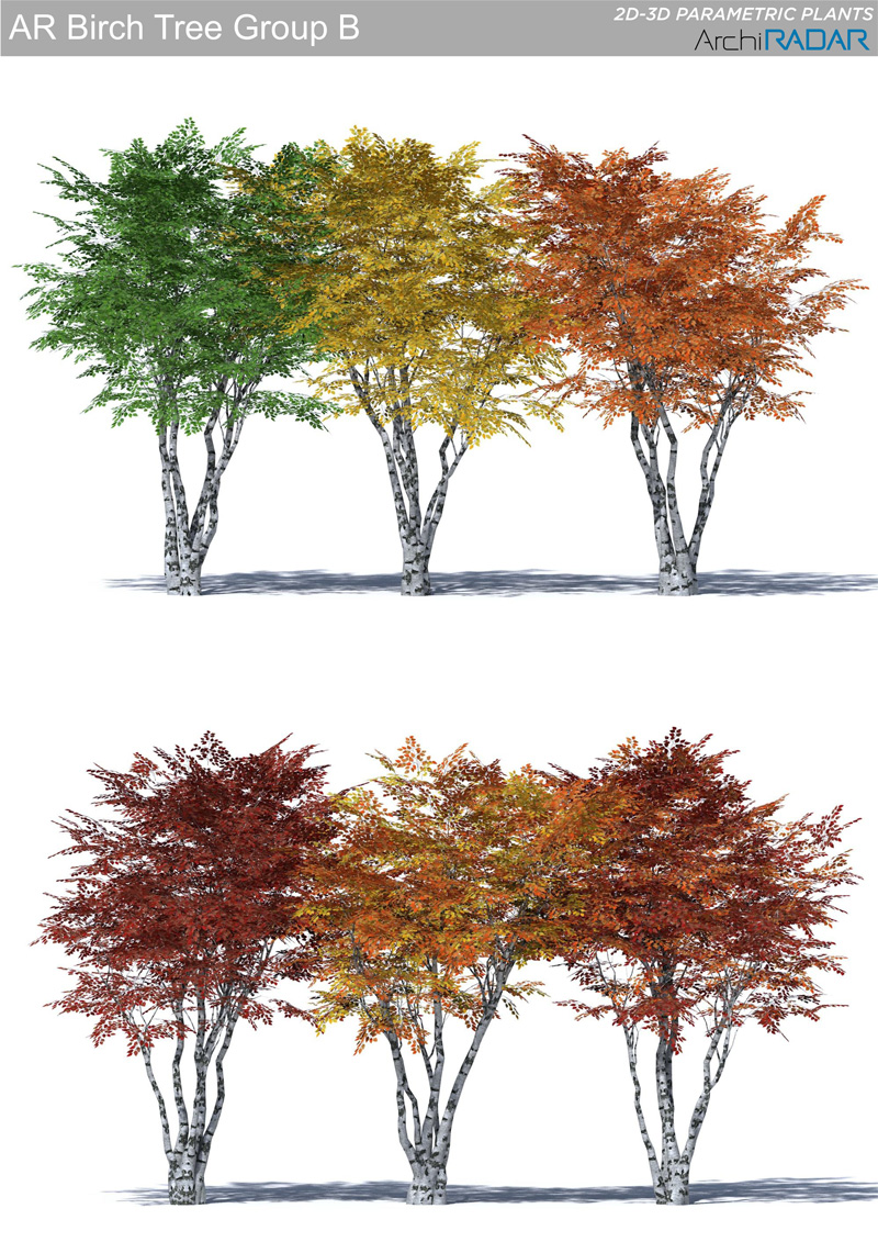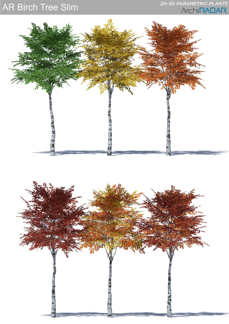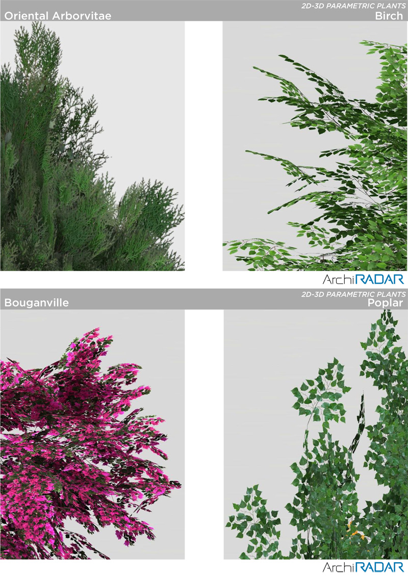 19 3D models of several trees, compatibles with ArchiCAD 16 or higher and CineRender.
