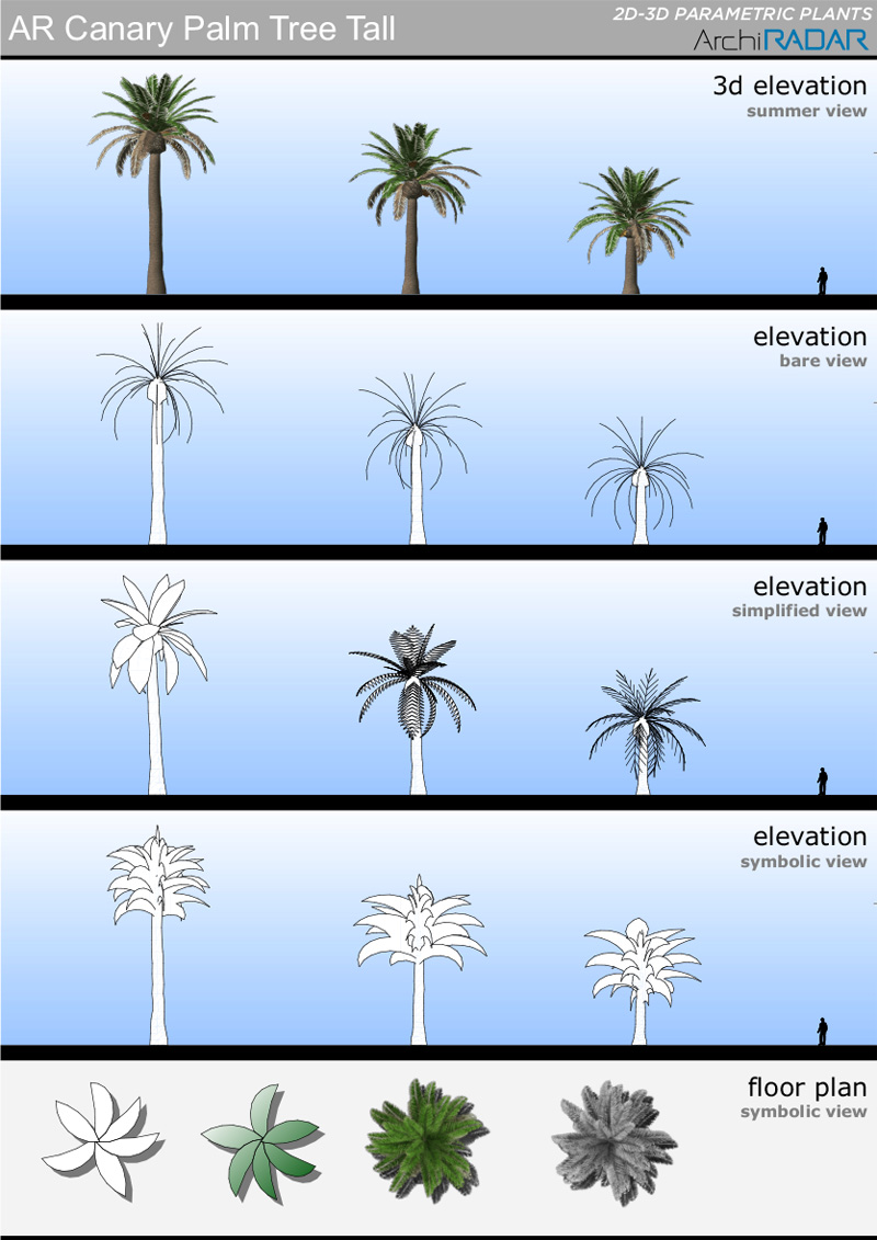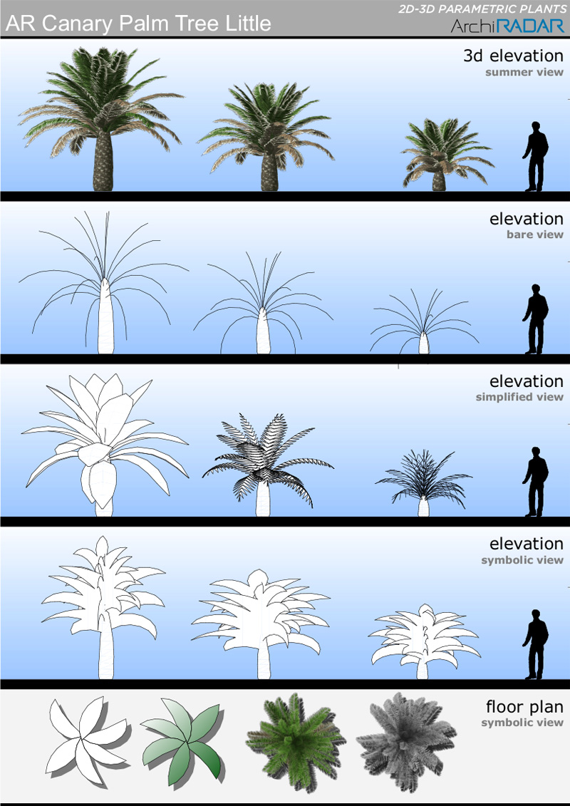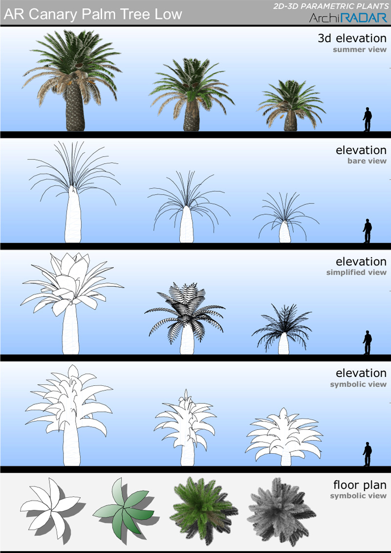 The objects are made with a low polygon quantity, they have a real growing factor according to the size and a corresponding symbolic view in elevation. Optimized for BIMX.