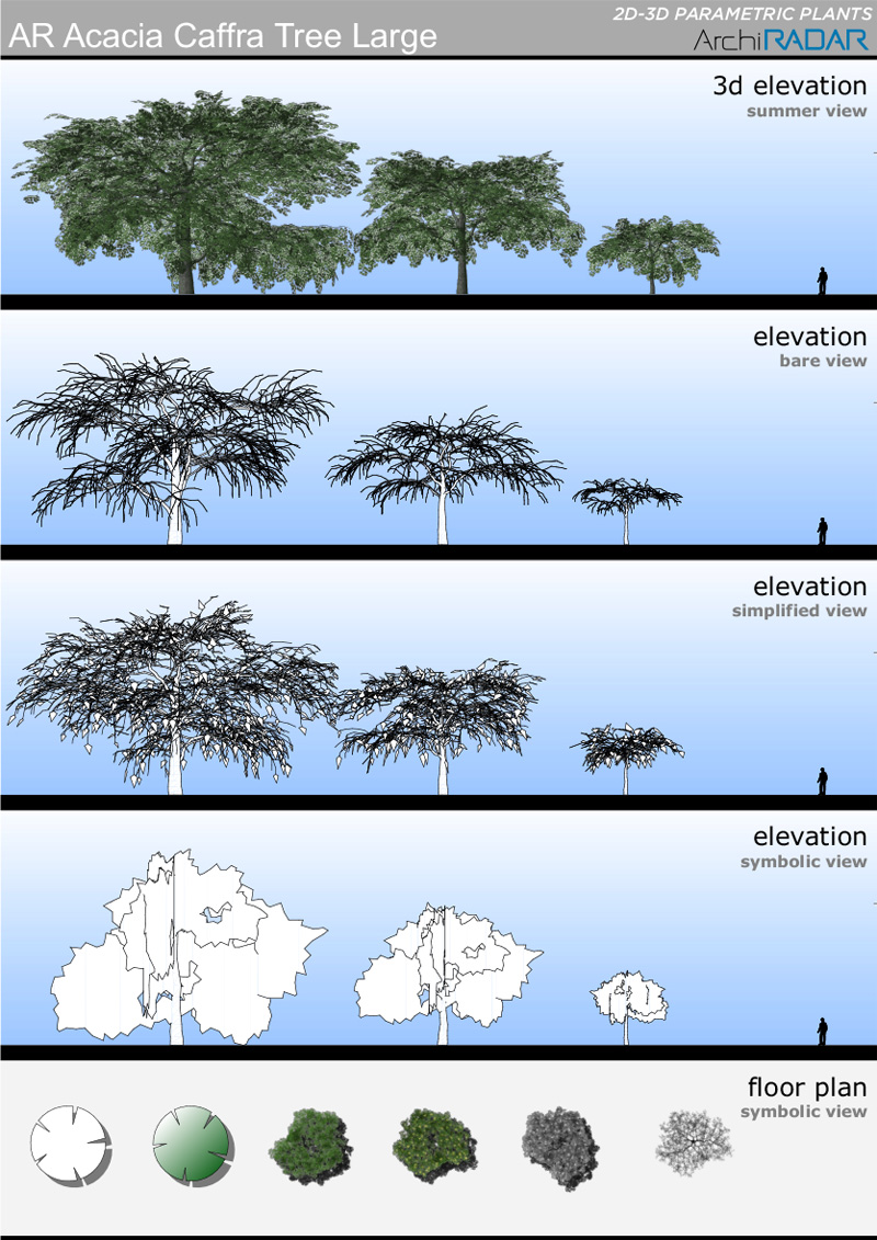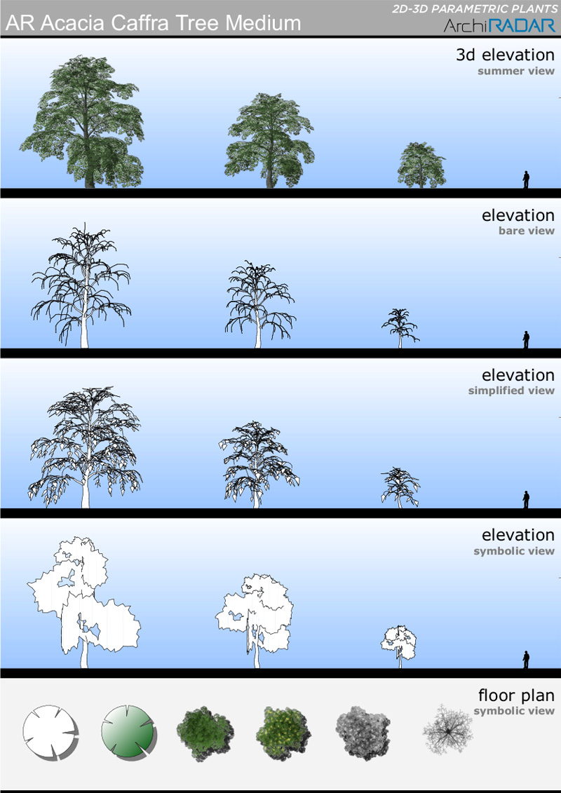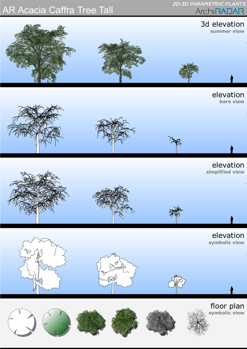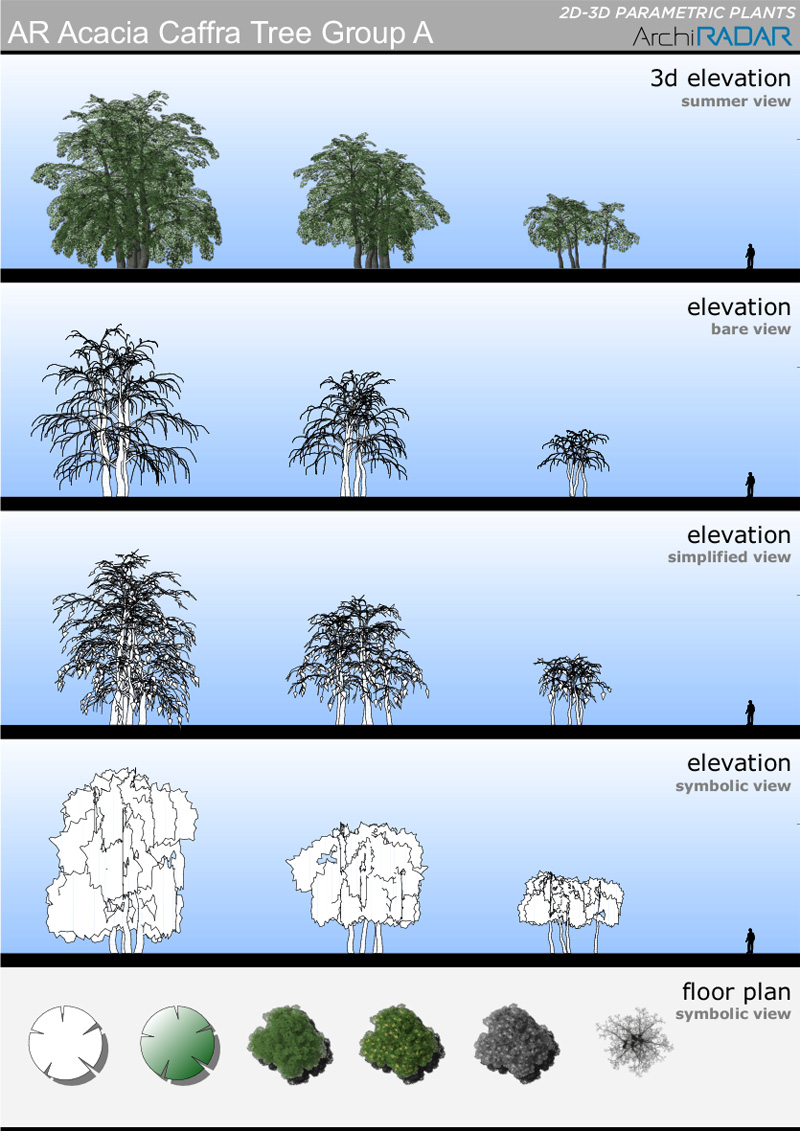 The objects are made with a low polygon quantity, they have a real growing factor according to the size and a corresponding symbolic view in elevation. Optimized for BIMX.