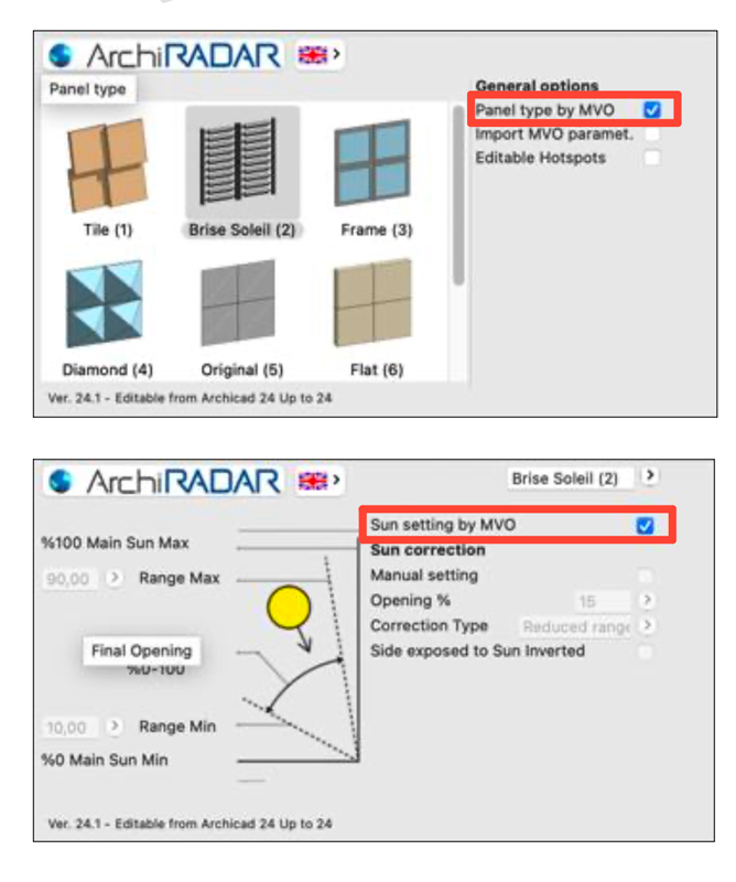 The ArchiRADAR responsive facade objects have been conceived to speed up the designer's work in computational designs. The responsive panels can be managed directly in Grasshopper using the Archicad connection; You will be able to create complex design with panels and pipes, starting from Rhinoceros using a simple surface. A graphic interface of the object helps the designer in managing all the features. Using MVO Model View Option you will be able to manage the setting of the objects with only few clicks without selecting and editing every single object. You will be able to create also schedules grouping similar objects under the same column.