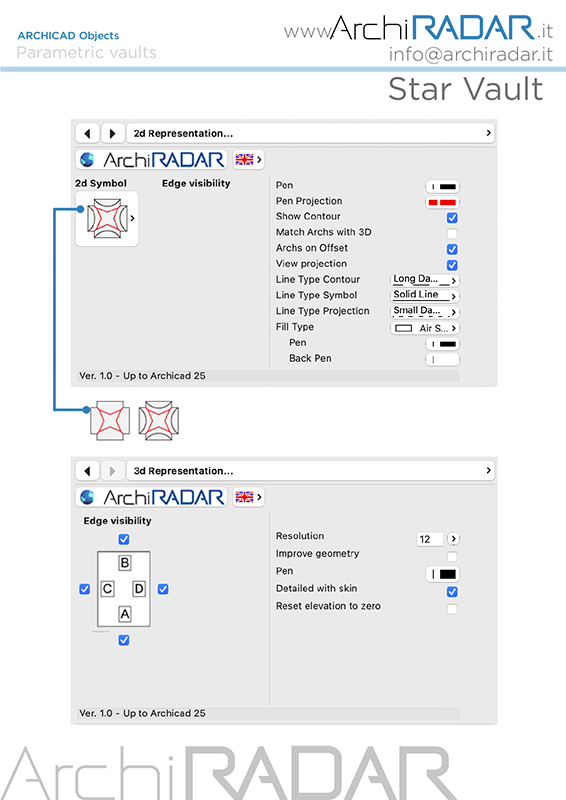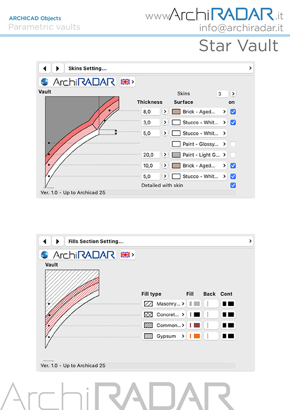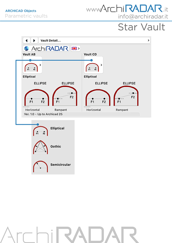The ArchiRADAR parametric Star vault have been conceived to speed up the designer's work, thanks to the possibility of managing many parameters.