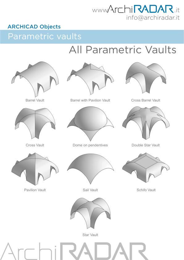 The ArchiRADAR parametric vaults (complete collection) have been conceived to speed up the designer's work, thanks to the possibility of managing many parameters.