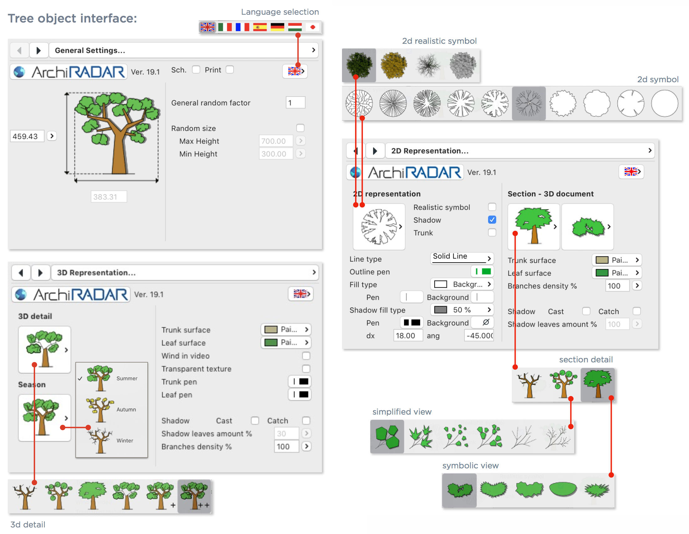 Plants always different from one another. Possibility to choose between various symbols in elevation corresponding to the real geometry of the plant.