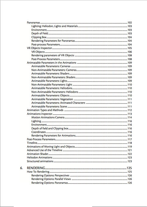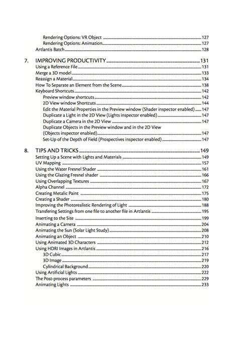 The book is divided into two parts: the first one (about 140 pages) devoted to the user guide and the second (about 100 pages) devoted to tutorials and tips&tricks, to greatly improve your renderings.