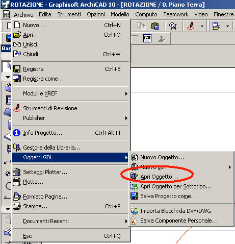 Andiamo sul menu “Archivio – Oggetti GDL – Apri oggetto…” ed apriamo l’oggetto appena salvato