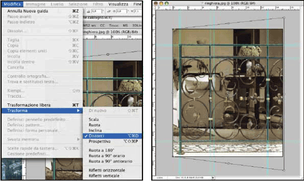 Attraverso il comando distorci e con l'aiuto delle guide l'operazione di raddrizzamento risulta molto semplice.
