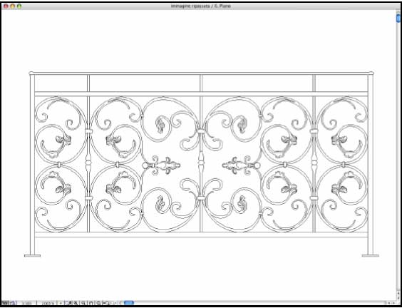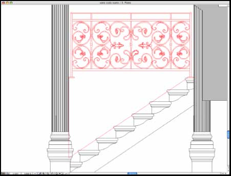 Una volta isolato il parapetto su un piano vuoto non resta che salvare in formato PlotMaker per poi esportare nuovamente in formato EPS da PlotMaker in modo da poter aprire il file così creato in Illustrator. Una volta importato in Illustrator bisogna separare e se serve anche scomporre i tracciati.