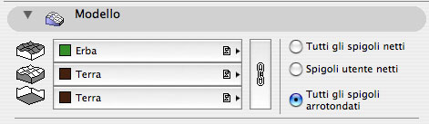 Altra cosa da non dimenticare è la possibilità di visualizzare gli spigoli in modo netto oppure arrotondato. Anche qui, sempre nei settaggi strumento Mesh, dovrete scegliere tra le tre opzioni: