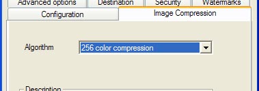 Come è possibile intuire possiamo impostare il grado di compressione delle immagini (e solo per esse, i contenuti vettoriali non vengono compressi) eventualmente presenti nella tavola. La compressione di default (se di compressione si può parlare) ha efficacia con immagini che non superino i 256 colori altrimenti non avrà effetto. L'altra opzione 256 color compression