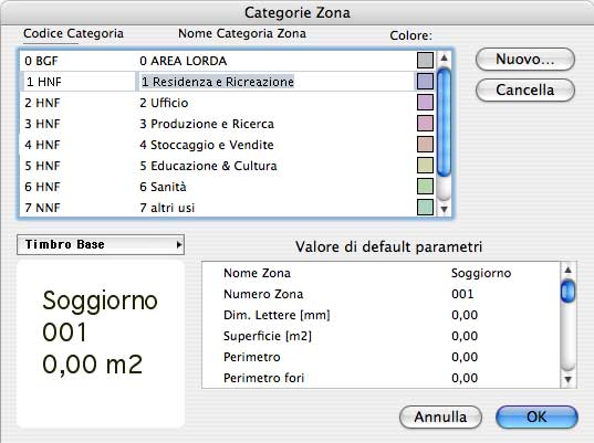 Mi arrivanno spesso richieste di informazione sulla possibilità di personalizzare i timbri associati allo strumento Zona ed ecco allora un tentativo di spiegazione sul loro funzionamento e sul tipo di informazioni che possono visualizzare. Per creare un nuovo timbro, la prima operazione da fare è quella di accedere al menu Archivio e, dopo aver attivato il comando "Apri Elemento di Libreria", selezionare il formato "Timbro" e cliccare sul tasto "Nuovo". ArchiCAD visualizzerà la finestra rappresentata qui sotto: