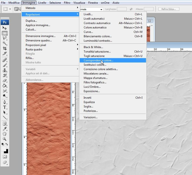 Dal menu a tendina andiamo ora a selezionare immagine-->regolazioni-->corrispondenza colore ...