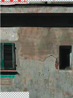È venuto il momento delle fotografie. Ce ne servono molte e che coprano tutta l'intera facciata. Possibilmente fatte con una macchina digitale in quanto la qualità è migliore di quella che si ottiene importando con lo scanner foto sviluppate. Potrebbero servire persino una ventina di foto da tagliare e riassemblare, come infatti nel caso in esame. Tutto dipende se riusciamo o meno a scattare foto più ampie e frontali possibili. Con un numero elevato di foto il lavoro è ovviamente più lungo ma il risultato finale è nettamente migliore. Apriamone una con Photoshop e trasciniamola con lo strumento sposta (il primo in alto a destra) dentro la finestra del rilievo di ArchiCAD. Photoshop creerà in automatico un nuovo Livello per questa immagine a cui verrà assegnato il nome "Livello 1". Andiamo quindi nella palette Livelli/ Canali/Tracciati di Photoshop e, dopo esserci assicurati che il livello attivo sia appunto il "Livello 1", clicchiamo nel menu a tendina sopra di esso (dove c'è la scritta "Normale") e scegliamo "Moltiplica".