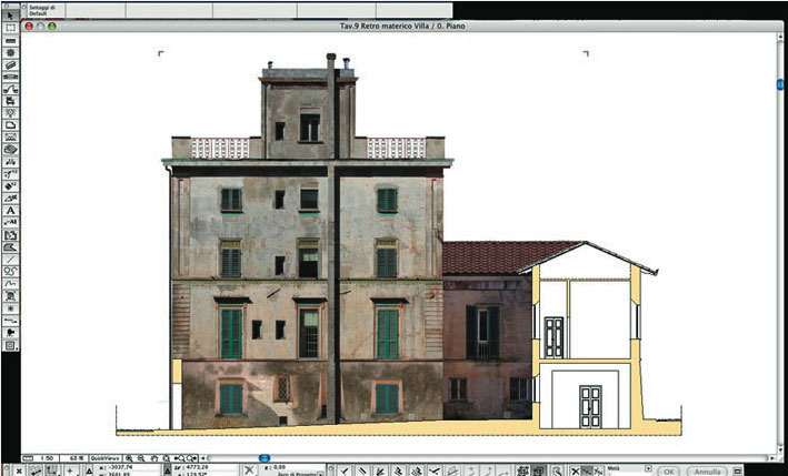 Questo tutorial vuol trattare del rilievo e della restituzione di prospetti di edifici , o monumenti, con la tecnica del raddrizzamento fotografico digitale. Infatti, la sempre maggiore precisione richiesta dalla teoria del restauro prevede una restituzione attenta dei prospetti, dei loro materiali e del degrado, al fine di valutare al meglio lo stato di conservazione e fornire una proposta di intervento il più possibile precisa e mirata. Inoltre, poter lavorare su un prospetto fotografico porta innumerevoli vantaggi, quali la possibilità di mostrare il risultato finale (tramite ritocco fotografico/fotomontaggio) e poter scegliere tra varie ipotesi di intervento. Negli ultimi anni sono nati molti software capaci di produrre, da normali foto in prospettiva, raddrizzamenti fotografici degli alzati. Un esempio su tutti è ArchiFacade di Cigraph, (vedi la sezione Add-on di questo sito) con cui è possibile far questo in maniera facile e veloce. Ma non tutti vogliono acquistare un altro software e preferiscono magari sfruttarne uno già in loro possesso (Photoshop nel nostro caso, ma anche un qualsiasi altro programma di fotoritocco). Ovviamente con un programma di fotoritocco la procedura è leggermente più complicata, e all'inizio il tempo impiegato nel compiere il lavoro può risultare lungo. Ma con un po' di dedizione e imparato ad usare bene il programma, i tempi si accorciano e i risultati ottenuti sono di qualità superiore, considerando che è possibile gestire raddrizzamenti prospettici a 300dpi o superiori. Non solo, non va sottovalutato il fotomontaggio che permette di mostrare al committente (o alla Soprintendenza, alla Commissione Edilizia, ecc.) il risultato finale prima ancora di iniziare i lavori. Vedremo adesso come realizzare un prospetto fotografico di una facciata di un edificio da restaurare.