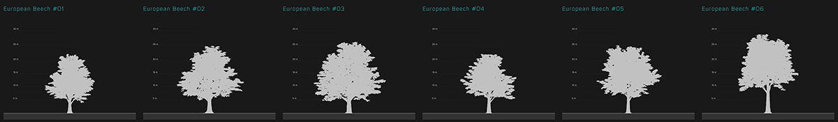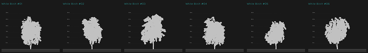 18 Modelli 3D di alberi diversi, in formato MXS, compatibili con Maxwell Render V2 o superiore.