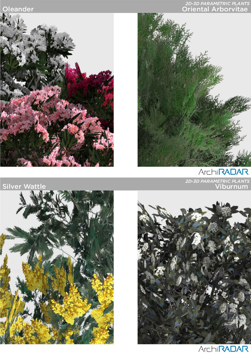 15 Modelli 3D di piante diverse, compatibili con ArchiCAD 16 o superiore e ottimizzate per CineRender.