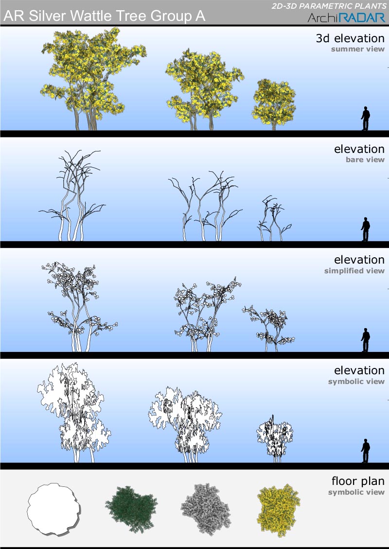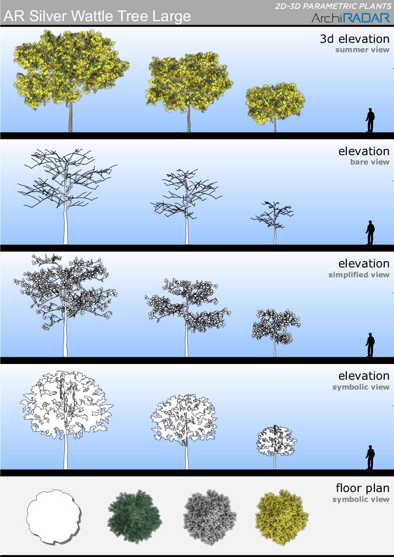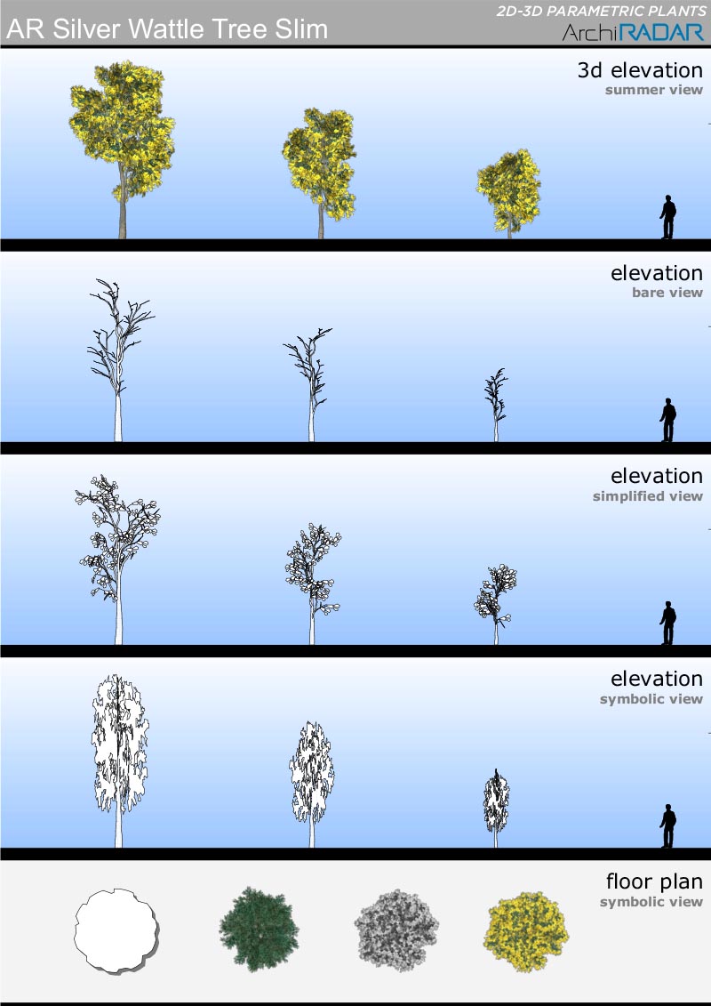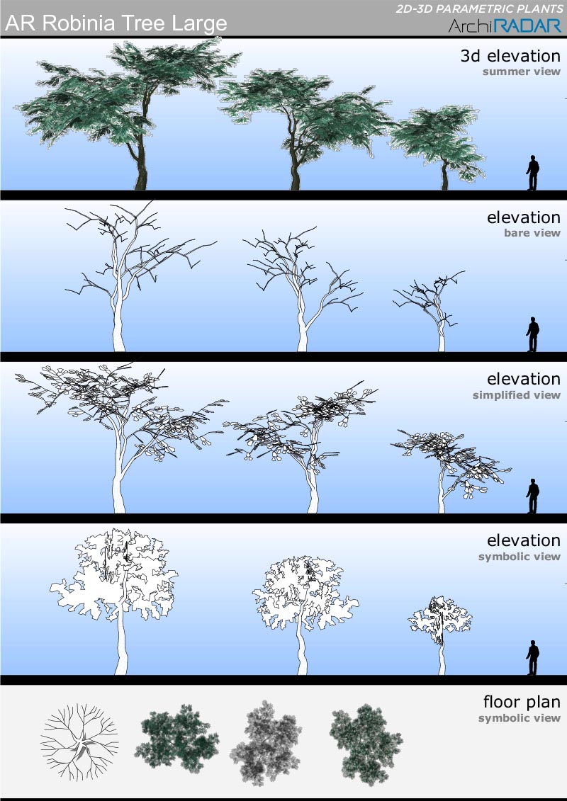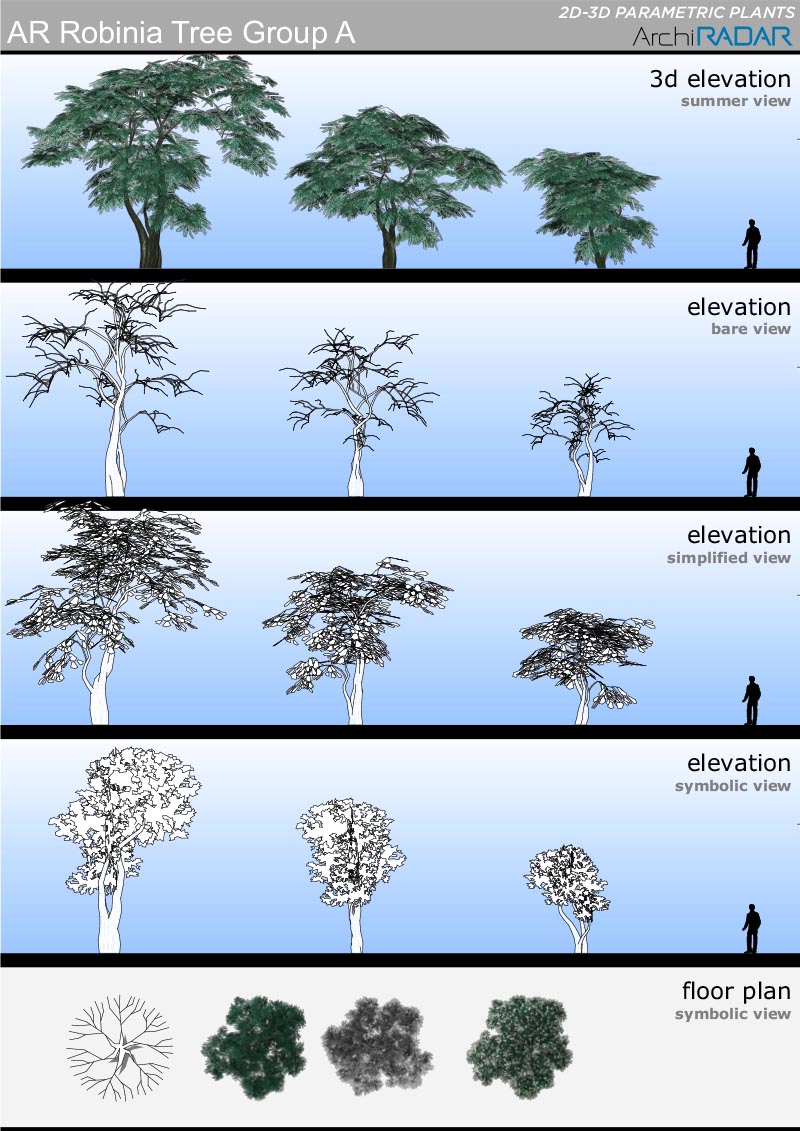 Opzioni disponibili all'interno degli oggetti:- Fattore di crescita reale- Vista simbolica in prospetto e sezione- Simbolo 2D con ombre- Simbolo 2D realistico- Livelli di dettaglio 3D- Opzione vento nei filmati- Stagioni (non per i sempreverdi)