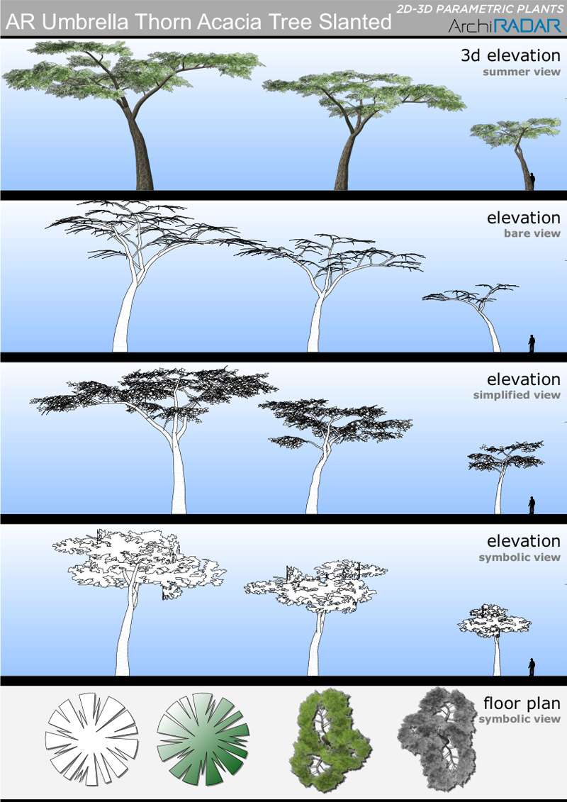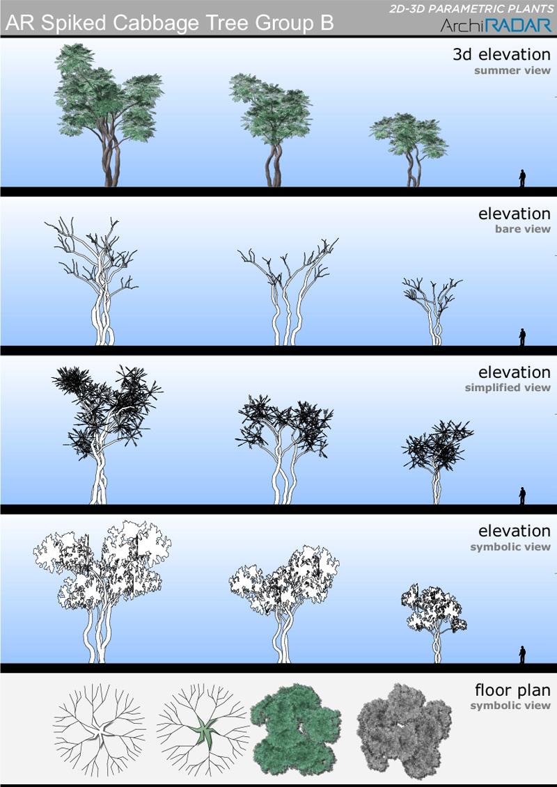 12 Modelli 3D di alberi diversi, compatibili con ArchiCAD 16 o superiore e ottimizzate per CineRender.