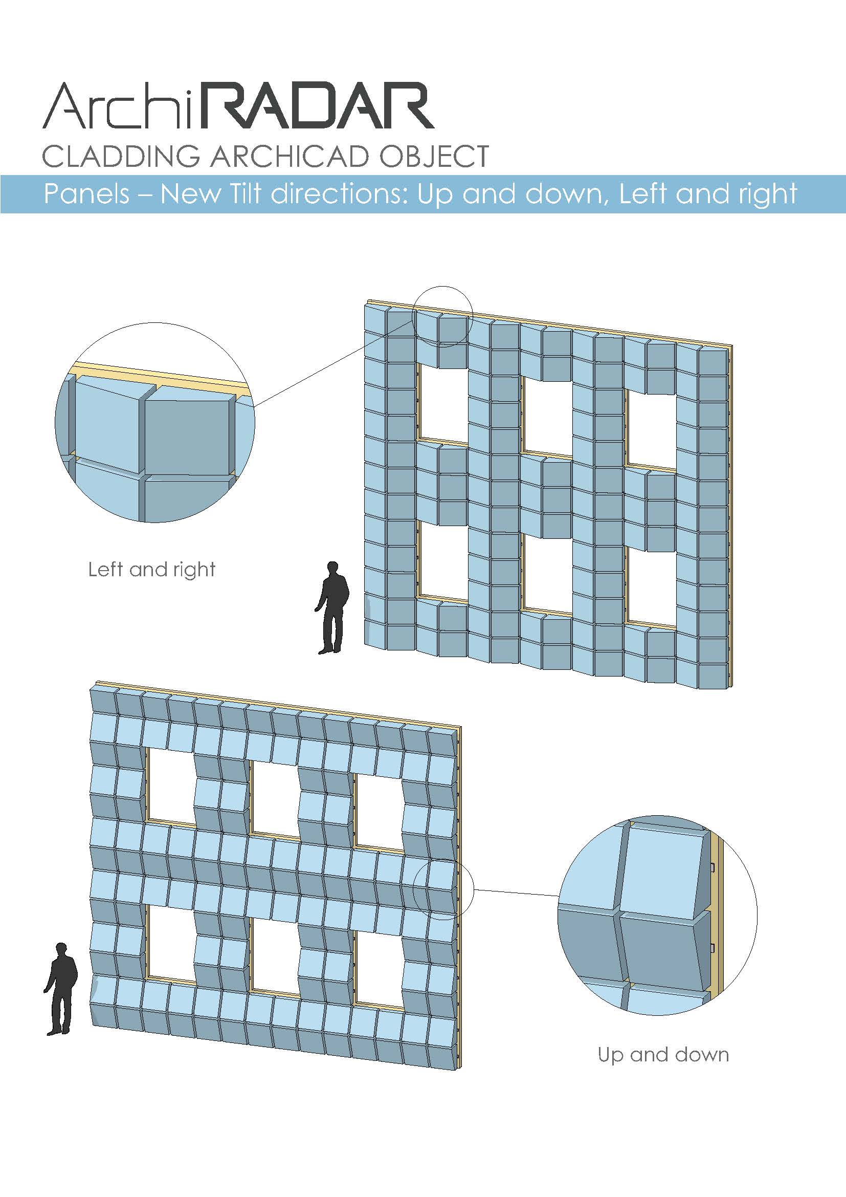 L'oggetto, completamente parametrico, può essere personalizzato per le texture, i pannelli, la sottostruttura e si può adattare ad innumerevoli soluzioni progettuali anche di facciate inclinate e poligoni complessi. Possono essere personalizzati anche i fori, le giunzioni e gli angoli su tutti i bordi, il livello di dettaglio in base alle viste (Opzioni Vista Modello).