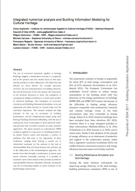 L’uso della simulazione numerica applicata agli edifici storici apre scenari molti interessanti ed argomento attuali di molti studi nel settore dell’HBIM (Heritage Building Information Modeling). La complessità di questa operazione è dovuta a molti fattori: la geometria complessa coinvolta, la non standardizzazione degli elementi costruttivi, il comportamento inerziale delle masse murali, l’importanza della veicolazione dell’umidità. Questi sono i problemi dovuti alla complessità di gestione dei flussi di lavoro di progettazione in un progetto di conservazione di edifici storici.