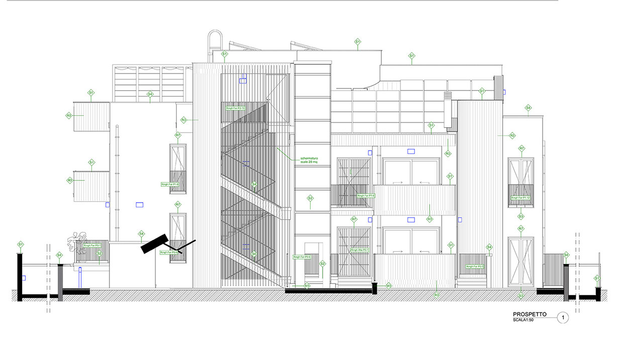 Progetto di un edificio residenziale a Latina realizzato con il supporto di un modello virtuale realizzato con metodologia BIM.